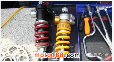 我們摩托車上,分別有兩個懸掛組件:一個是位于前輪,通常叫做前叉;另一個在后輪處,通常叫做后避震。