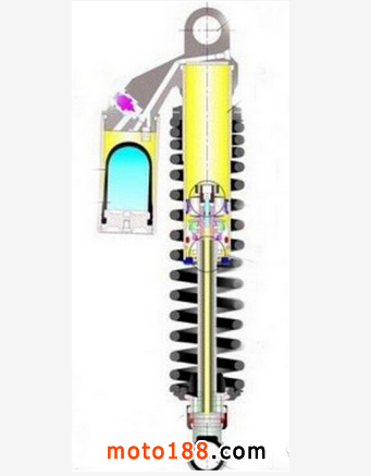 阻尼器就像是一個充滿了油的打氣筒。氣泵上下移動的速度依賴于供油通過孔洞的大小和油的粘稠程度。所有的車都有彈簧和阻尼,在前叉上,彈簧是隱藏在內;而在后減震上,彈簧是曝露在外部的。
