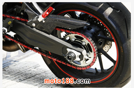 首先,這臺MT07貼上Yamaha周年版拉花車身貼紙連輪圈貼,外觀非常醒神,加上 兩邊的水箱邊冚及肚兜冚,營造STREETFIGHTER車款的感覺。另外,添置了實用的SW-MOTECH保護支架、TERMIGNONI排氣喉、 LIGHTECH腳踏、OHLINS尾避震、BREMBO直泵牛角、碳纖維尾沙板及多項RIZOMA優質改裝部品等等........,令車款外觀與性能 也有所提升及美化。
