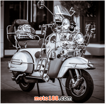 爾后,越來越多的低收入年輕人開始被MODS所吸引而加入這個行列,他們把對高級汽車的向往轉移到VESPA上,諸多英國高級汽車的裝飾件被拿來當裝飾品, 如JAGUAR、ROLLS-ROYCE等汽車部件均被MOD一族作為最佳裝飾品。而車燈成為其中最為流行的改裝件,當時一部資深MOD族的VESPA可能會出現十幾甚至幾十顆車燈!