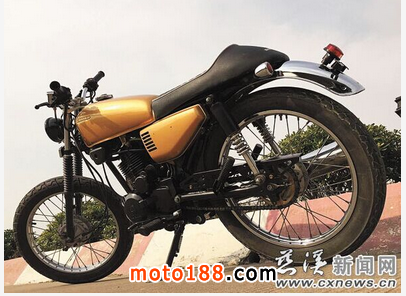 近日,記者在柴遠(yuǎn)林家中看到,一輛“土豪金”摩托車擺放在客廳里,車型很復(fù)古。柴遠(yuǎn)林拿出手機(jī)給記者展示改裝過程的照片,看一輛舊摩托車如何“變身”成拉風(fēng)機(jī)車。