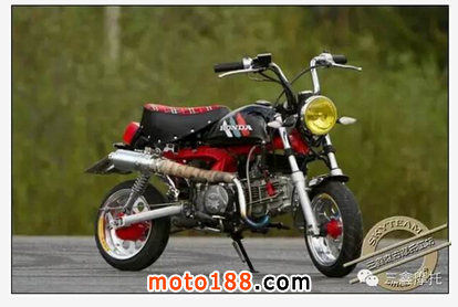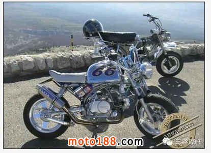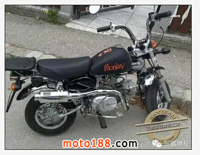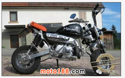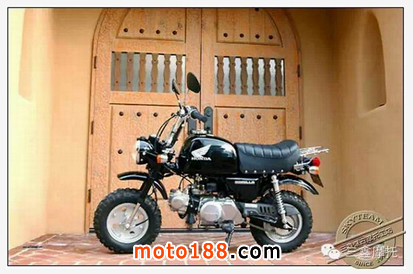 Monkey猴子最初是由日本HONDA公司生產的一種迷你型二輪摩托,由于它的排量小、坐高低、操作簡單、安全系數較高、每百公里約1.5升的油耗、50Km/H的時速、可折疊的把手便于攜帶,使得它從1961年第一代Z100誕生至今五十余年一直是休閑代步的明星車型。