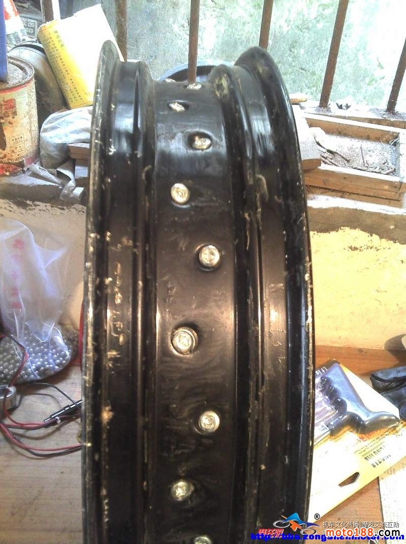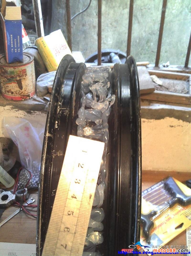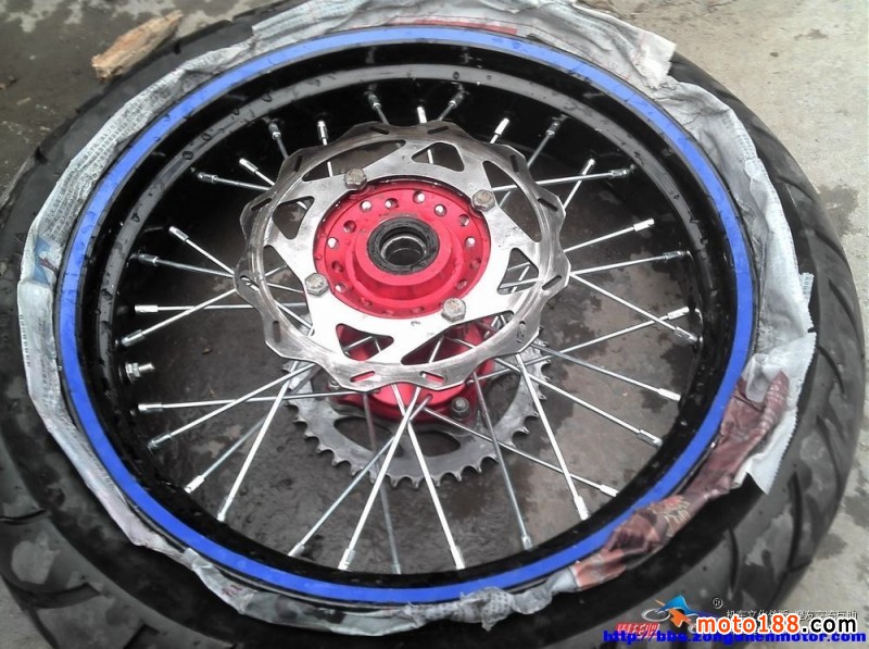 太子車有很多是輻條輪的,基本上用的是內外胎,相對于真空胎來說,就怕在前不著村后不著店的地方車胎被扎壞,加上高溫天氣行駛時爆胎幾率較真空胎高,所以很多兄弟都想改真空胎,比較太子車配輻條輪是一經典,但很多兄弟都不知道怎么改,我也是留意了很久才找到這樣的帖子,特意發上來已給各位兄弟做個參考。 1:先確定輪子是正的,如果不正必須先調好。 2:將輪圈內部刷洗干凈,用洗衣粉洗潔精加溫水,一定要將油污洗干凈,晾干,必須干透。 3:準備好兩支玻璃膠,中性的,透明的,最好是防霉型的,好一點的也才二三十一只。 4:將玻璃膠擠到輪轂中間凹槽處(后輪大概1支,前輪大概大半支),然后用用鋼尺或其它工具將玻璃膠抹平,厚度大概在5mm左右。然后讓玻璃膠充分干透,大概需要兩天左右的時間。記住,氣門嘴的位置不要抹膠,這個位置一定要留出來{:soso_e113:} 5:玻璃膠干透之后裝改裝真空胎的胎墊,或者直接用真空胎的氣門嘴也可以.如果是使用了胎墊,在胎墊裝上之后最好用玻璃膠將胎墊和輪圈之間加上一點玻璃膠,特別是氣門嘴部位。 6:將真空胎裝上輪圈,氣泵加氣,如果這是氣加不起來,大家也不要急,那就是將報紙折成條打濕,讓后塞到鋼圈和輪胎邊緣中間,起到一個密封的效果,這個時候加氣就很順利了,呵呵。氣加好之后可以將報紙條扯出來就行了。 7:輪胎氣加好后在把氣放掉,然后從氣門嘴加入輪胎自補液,然后再把輪胎氣壓加正常水平,大功告成。
