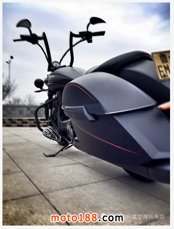 改裝項目:更換定制23寸輻條式無需內胎輪轂,ARLEN NESS六度調整套件,HOTVIC車身懸掛1.5寸降低,ARLEN NESS手把、后視鏡,勝利前輔助大燈,定制MEAT HOOK高把,ARLEN NESS黑色切削剎車油壺,ARLEN NESS一體切削鏤空大腳踏,ARLEN NESS ABS系統升級,ARLEN NESS排氣。