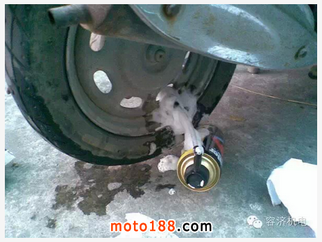 在摩托車的翻新修理工作中,有的車身貼花常常變舊變毛,但你又很難將它揭下來。這里有一個辦法,就是先把貼花用水泡301min左右的時間,使其濕潤,再用繪圖用的橡皮蘸上一點洗衣粉溶液,在貼花上搓擦,過一會兒,貼花及一些臟物被搓成條掉下來。然后用水把車的表面沖洗干凈即可。