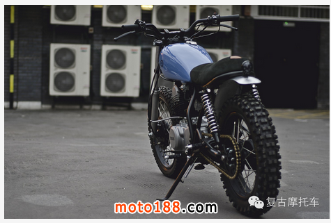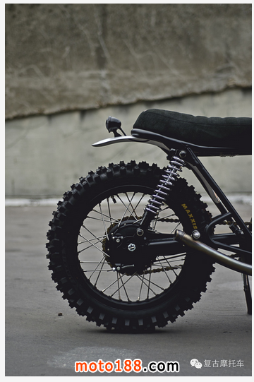 它的后轉向燈也是非常值得借鑒的(小編也是很喜歡這個創意,真的很贊!),這臺車的后轉向燈,并未使用常見的轉向燈,而是由兩個很小巧的led替代(網上也有類似的小燈在賣),并且很巧妙的安裝在了后減震器的上安裝柱上,并將線路隱藏在車架里,進一步達到精簡車身的目的,乍一看,根本看不到,只有在亮起來的時候,人們才會注意到,它原來是有轉向燈的。裝酷不忘安全,小編認為這也是復古車改裝應該遵循的第一原則!