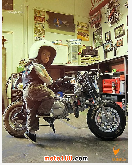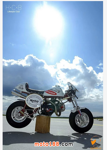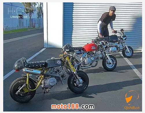 六十年代,本田公司開始開發迷你電單車。1961年,于日本本田的“Tama Tech”游樂場內,出現了一批迷你電單車供游人駕駛。其中一部以紅色車架色襯以白色油缸,配上五寸直徑車輪及 50cc 引擎的迷你車最受歡迎小朋友歡迎,此車的型號為 z100。由于駕駛這部電單車的時候,姿勢有如一只猿猴,所以大家都稱 z100 為 Monkey。Monkey嶄新的新穎設計,迅即吸引到不同年齡的電單車愛好者。于鈴鹿賽車場內,甚至有人以這部 Monkey 作代步之用。