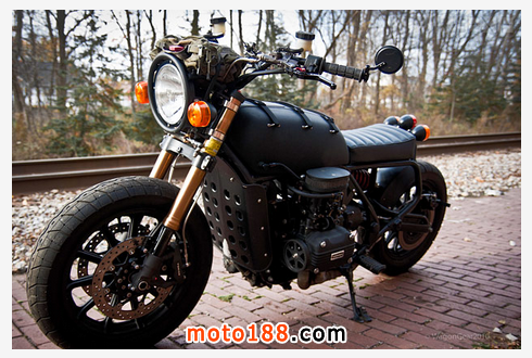 改裝部件更多的采用事故車的尸體,如GSX-R的前插、CBR的面板、還有CB750的油箱。這些本來都要當作廢鐵的零件現在又重新煥發了生命,我們聞所未聞的一輛全新的美式bobber就這樣誕生了。