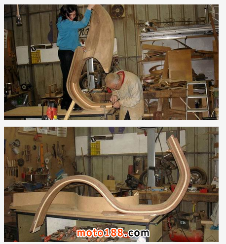 這臺木質摩托車是專門為他心愛的女兒Daniela 所創造,圖中除了可以看到最終的樣子,更是可以一睹這輛車的制作過程。可以看到Carlos Alberto 先是畫了一幅心中摩托車的草圖,然后根據草圖選取合適的木材。
