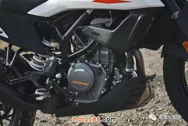 KTM 390 Adventure核心動(dòng)力來(lái)自于一臺(tái)373CC單缸水冷四沖程發(fā)動(dòng)機(jī),匹配電噴系統(tǒng),符合國(guó)四排放標(biāo)準(zhǔn)。發(fā)動(dòng)機(jī)最大功率為32千瓦,約43.5匹馬力,最大扭矩為37牛米。油箱容積為14.5L。
