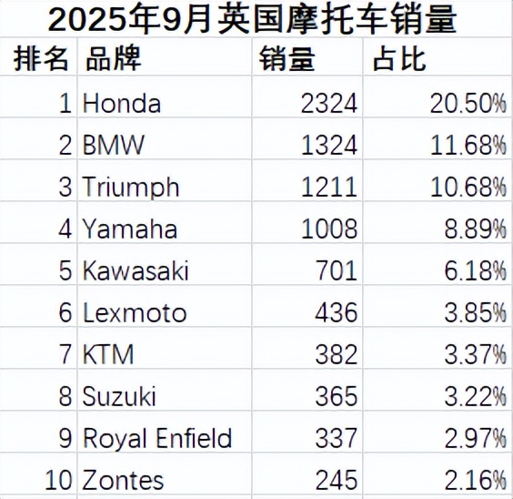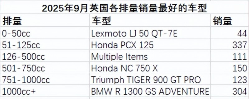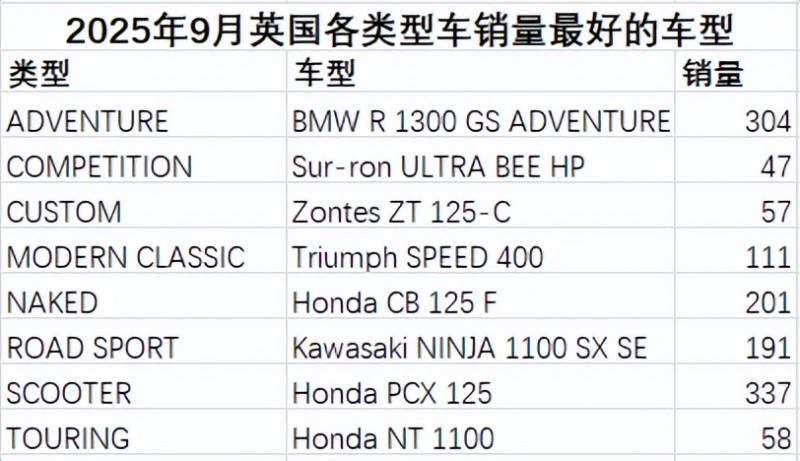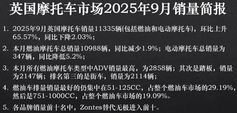2025年9月英國摩托車市場銷量簡報